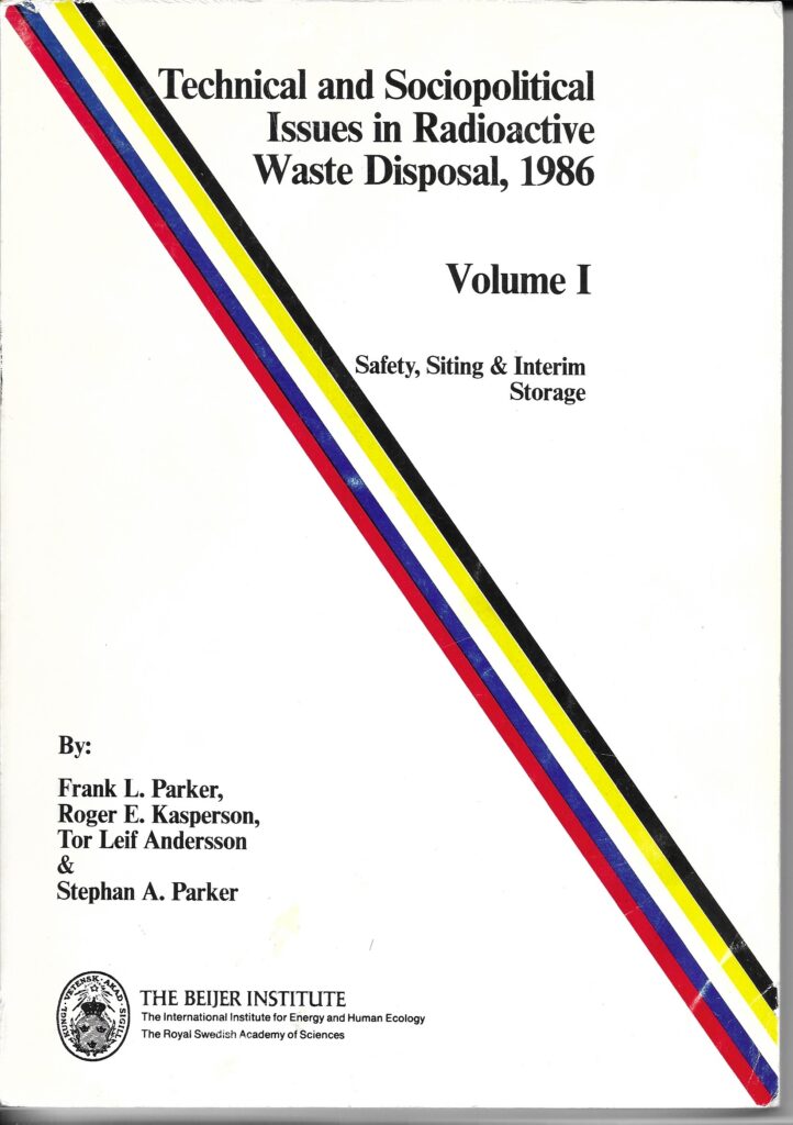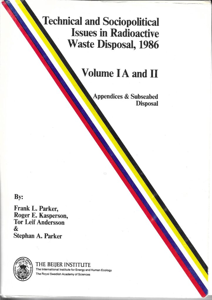 The results were published, as work proceeded, in a series of reports from the Beijer Institute: “The Disposal of High-Level Radioactive Waste” (1984, Vols. I and II), by Frank L. Parker, Robert E. Broshears and Janos Pastor and