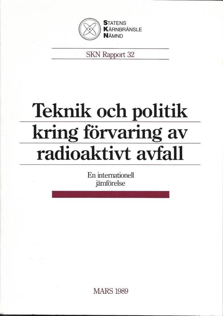 Andersson, T. L. Teknik och politik kring förvaring av radioaktivt avfall. En internationell jämförelse. Stockholm: Statens Kärnbränslenämnd, 1989.