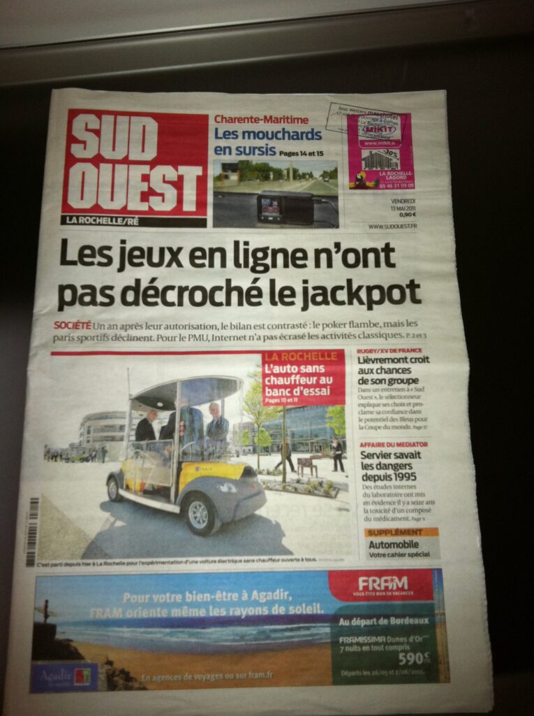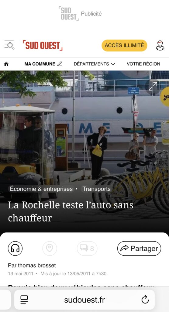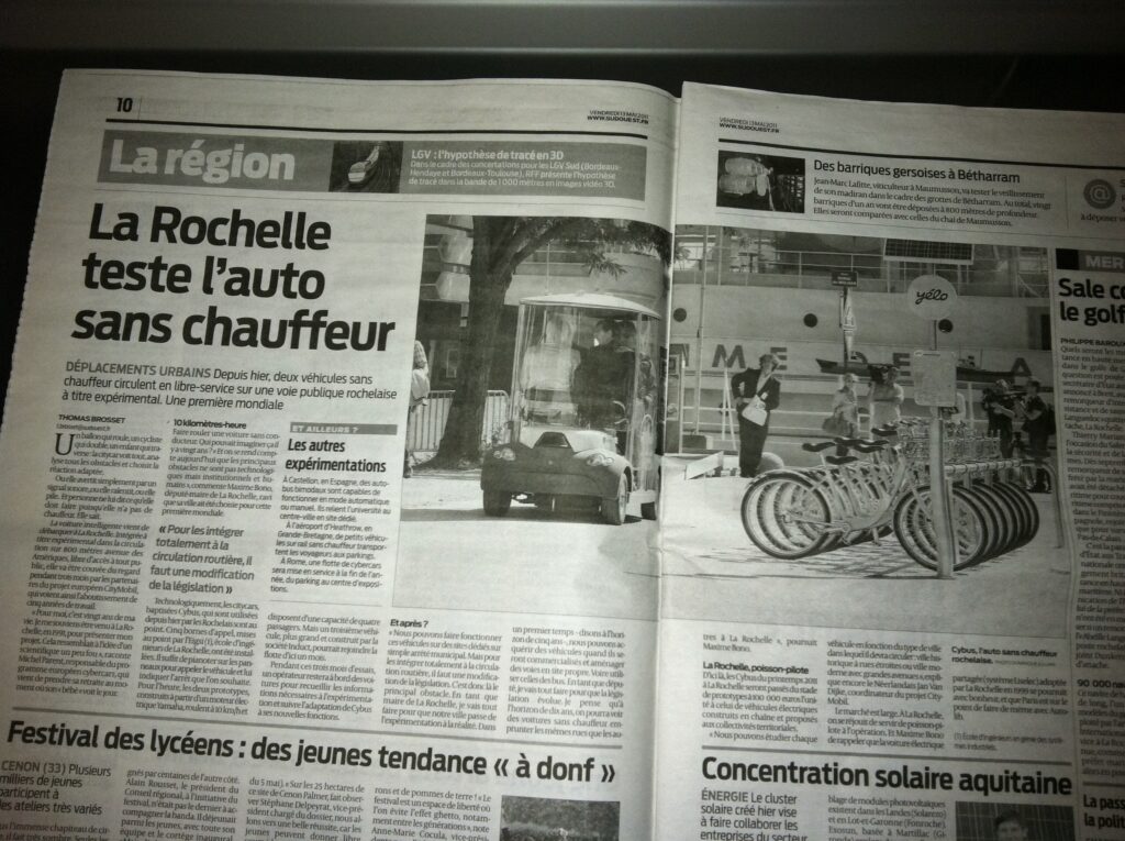 In La Rochelle I had the privilege of riding in the first automated vehicle to operate in mixed traffic. See photo above, from the local paper.