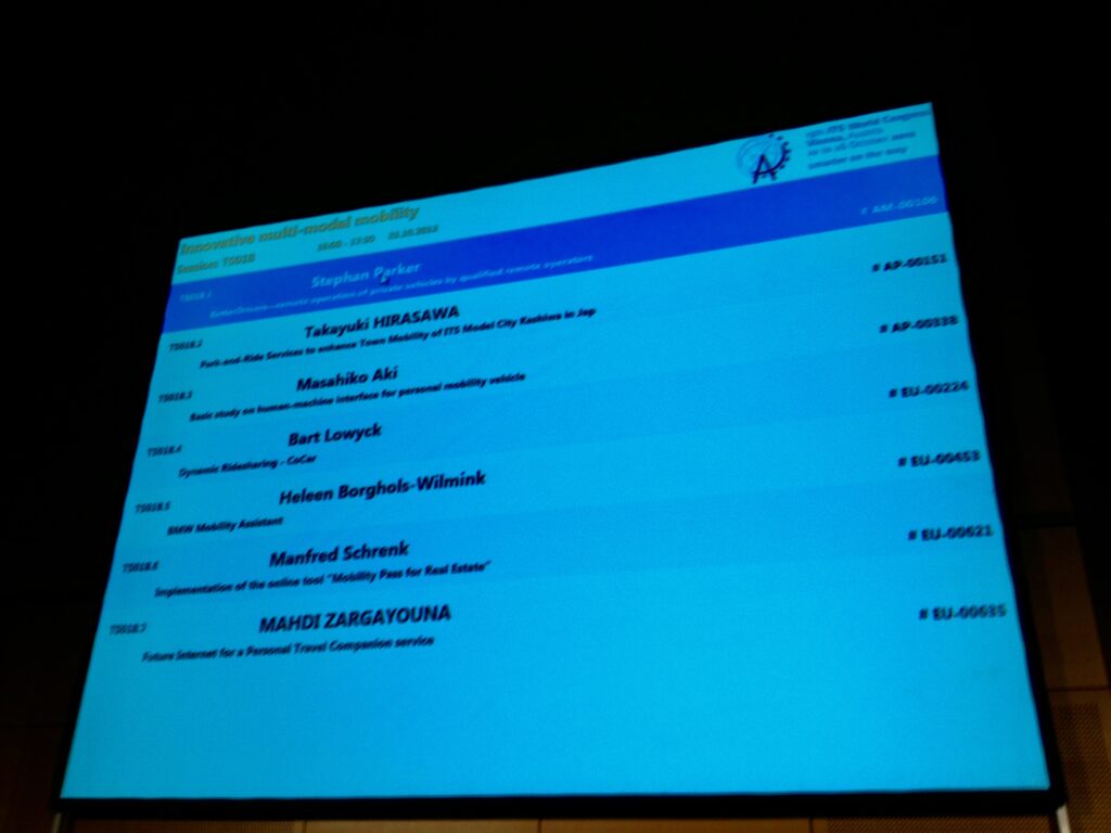 My bosses at the Transportation Research Board (TRB) authorized me to present at the 2012 ITS World Congress. They even paid my registration fee! I was thrilled to be the first speaker at the session “Innovative Multi-modal Mobility.”