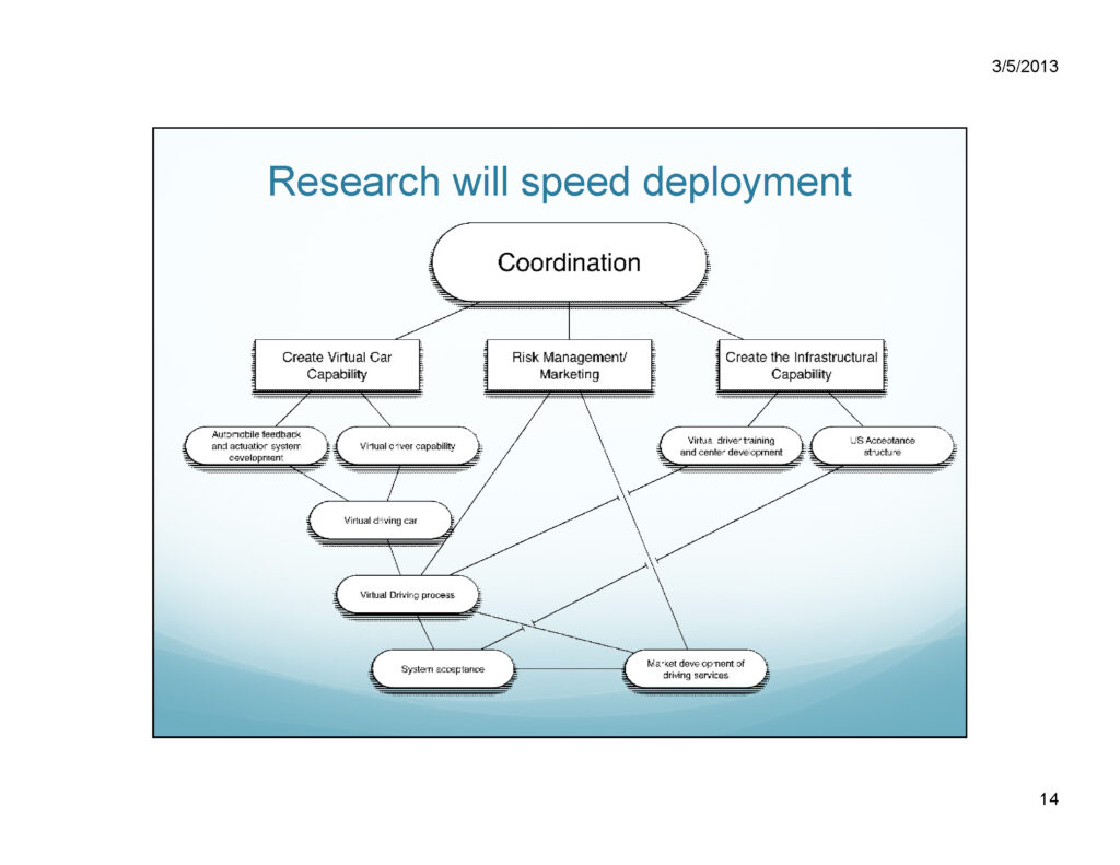 To realize the potential for service delivery, the technology needs to be coordinated with system acceptance and market development of driving services.