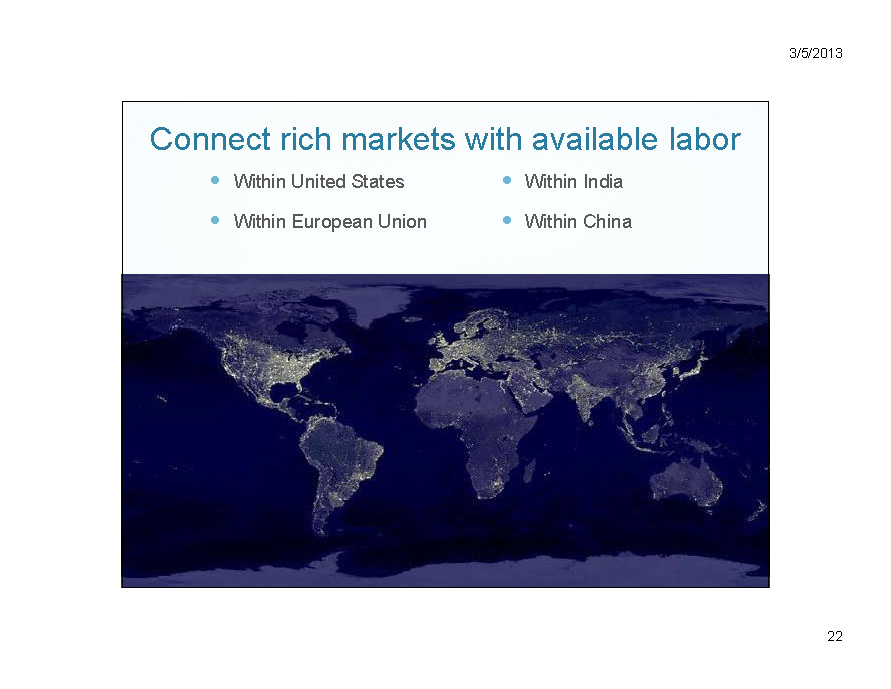 Exhibit 3. BetterDrivers can link labor with wealthy consumer markets within the European Union, India, China, and the United States.