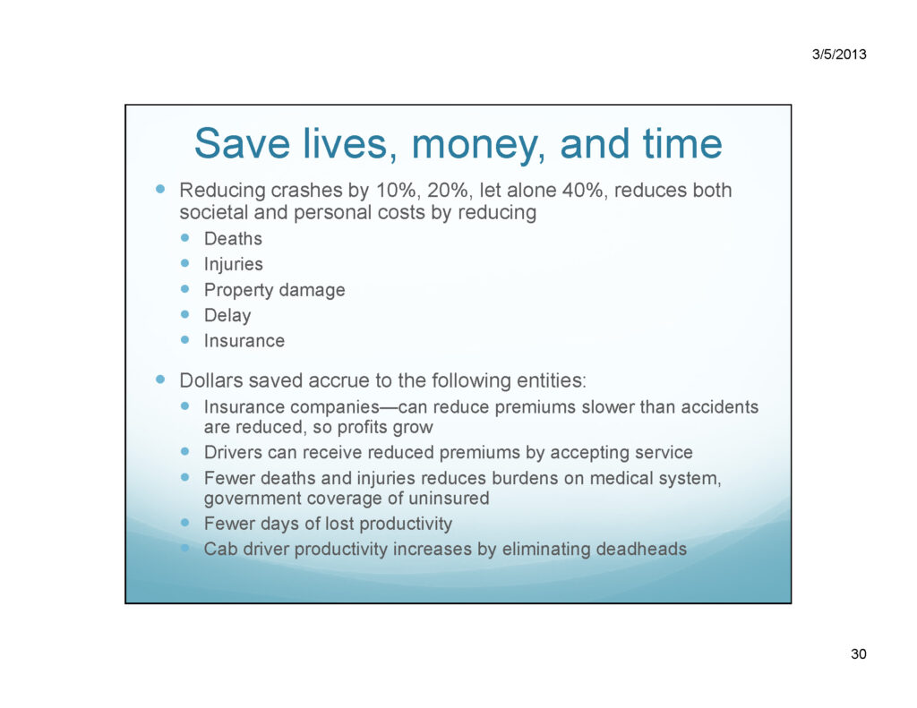 - large public benefits by significantly reducing crashes, deaths, and injuries