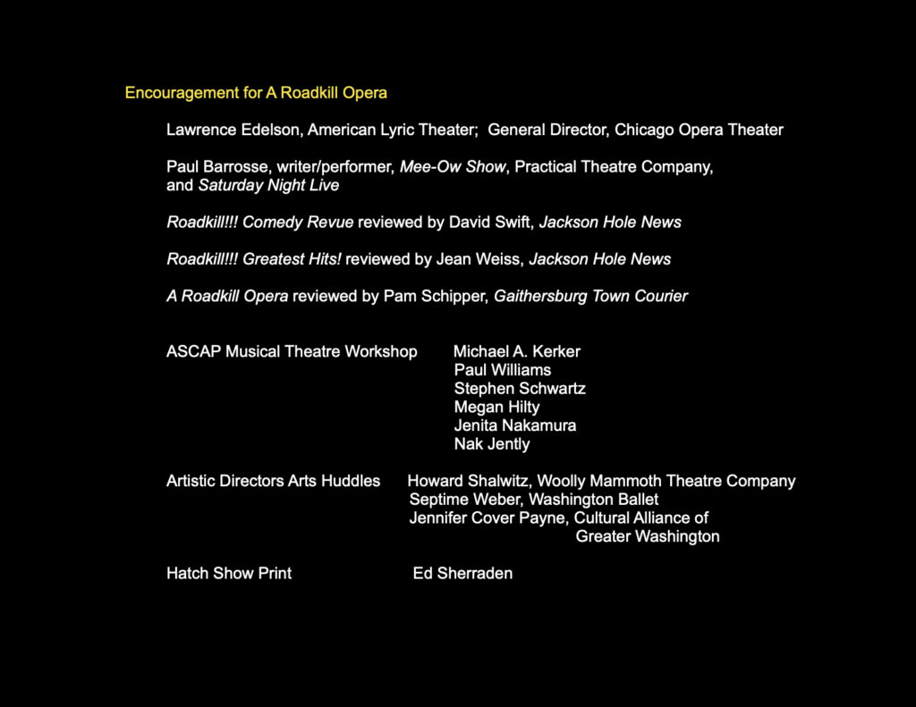 Welcome to A Roadkill Opera! Celebrating the 10th Anniversary of the 2016 world premiere performances at the Mead Theatre Lab at Flashpoint