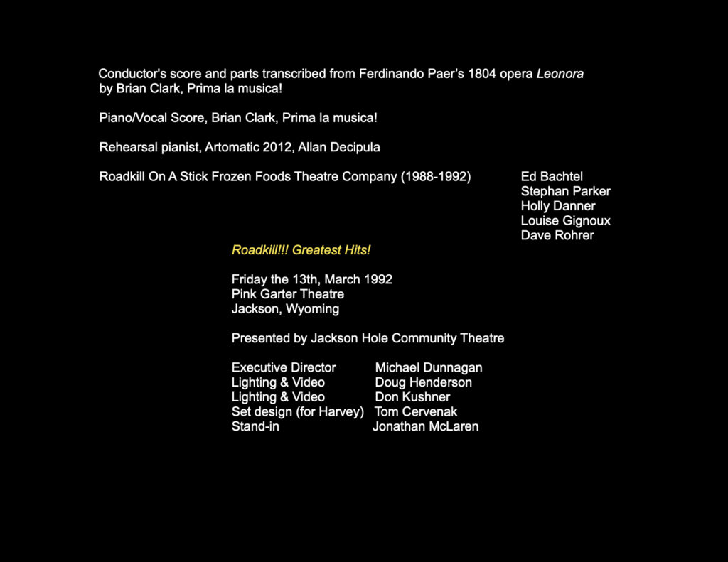 Movie Credits: Roadkill!!! Greatest Hits! A Roadkill Opera Movie