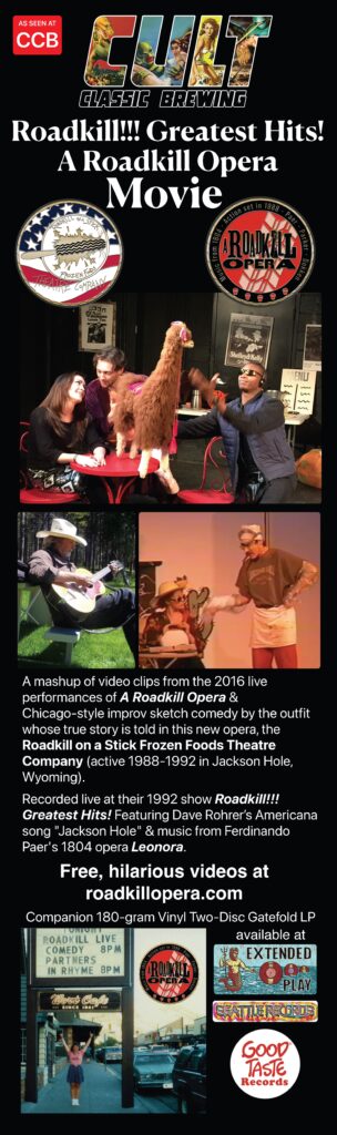 Recorded live at their 1992 show Roadkill!!! Greatest Hits! Featuring Dave Rohrer’s Americana song “Jackson Hole” & music from Ferdinando Paer’s 1804 opera Leonora.